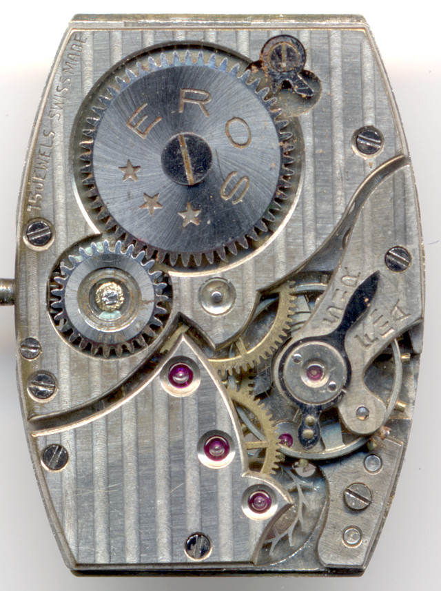 Most probably in the 1940ies, they released the 8 3/4 x 12 ligne caliber Phenix 834, described here. It was a pretty large form movement with pallet lever escapement and screw balance. The unique shaped bridges make its identification easy.