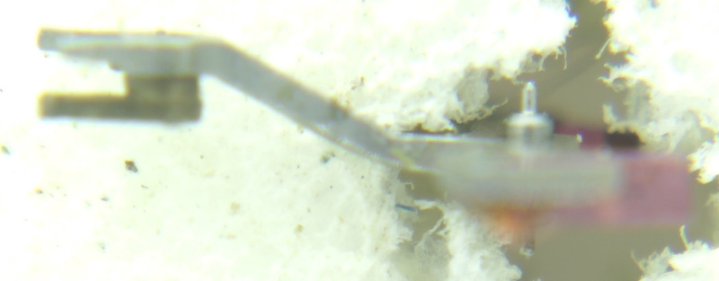You see the large wear and tear and the runout bearing, which forces are working here. A ruby bearing would have been a better solution.