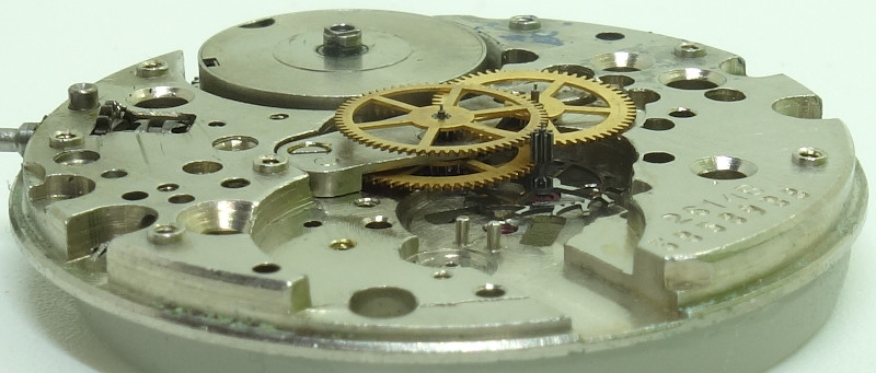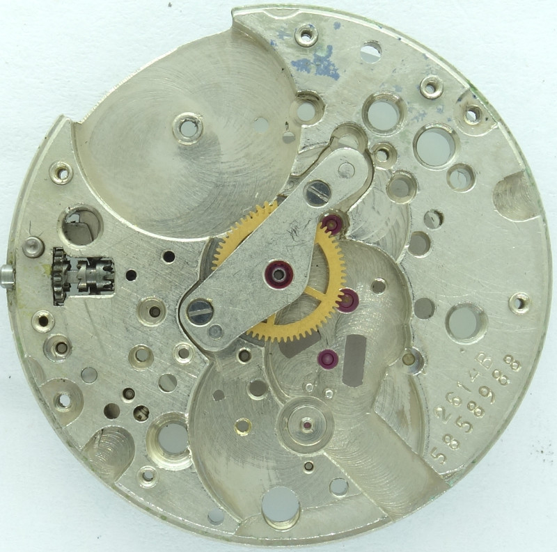 This 11 1/2 ligne windup movement from Russia, the caliber Poljot 2614B which is - details are unknown, sorry for that - the further developed Poljot 2614, has got an interesting construction, and is also aesthetically very nice due to its strict geometrics.