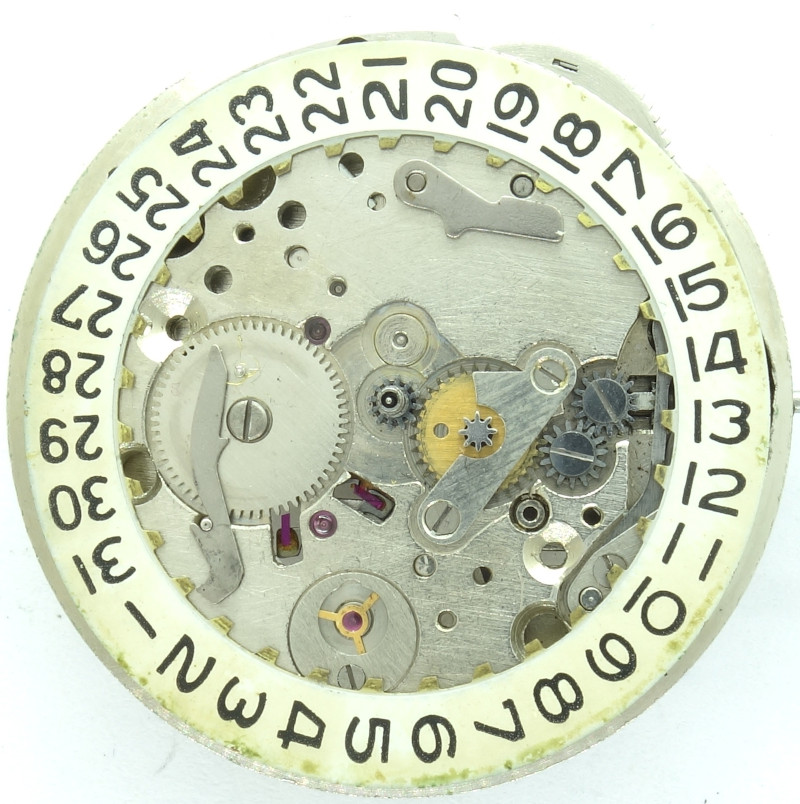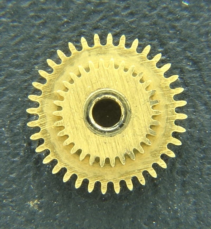 The calendar switching wheel is driven by a double hour wheel, whose upper part is driven by the changer wheel and whose lower part drives the switching wheel.