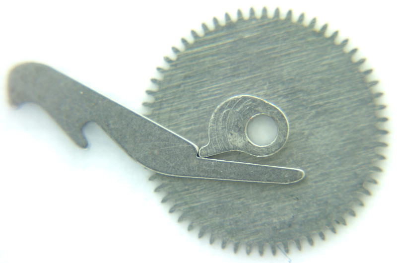 The Poljot 2616.2H has got an instantly switching date indication, which is realized with a date switching wheel with a cam and a switching lever.