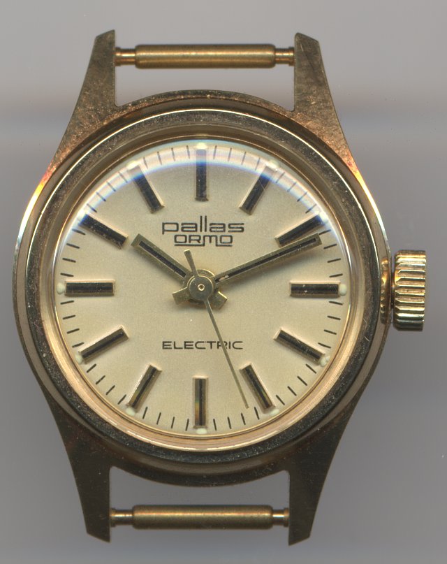 This is the last electromechanical movement of the german Pforzheimer Uhrenwerke. You can easily see all signs of the end of traditional watchmaking: With much plastic and undecorated plates it resembles more of a quartz movement instead of a classic mechanical movement. And just look at the regulator: How shall that simple device of two metal strips with lots of tolerance achive a good precision? Unfortunately, it cannot be tested, since the movement is already gummy.