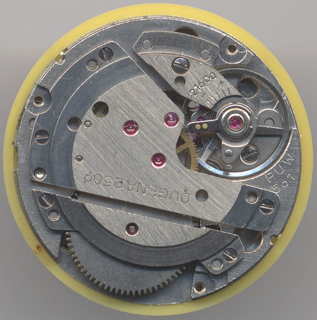 The PUW caliber 561 was the base movement of the last but one movement series of the Pforzheimer Uhrenwerke. The movement plates show, that it was prepared to carry a selfwindig mechanism, better known as PUW 1561.