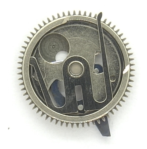 The ratchet is located on the inner side of the gear train bridge. Unfortunately, it is also riveted, making it difficult to replace it in case of an error.
