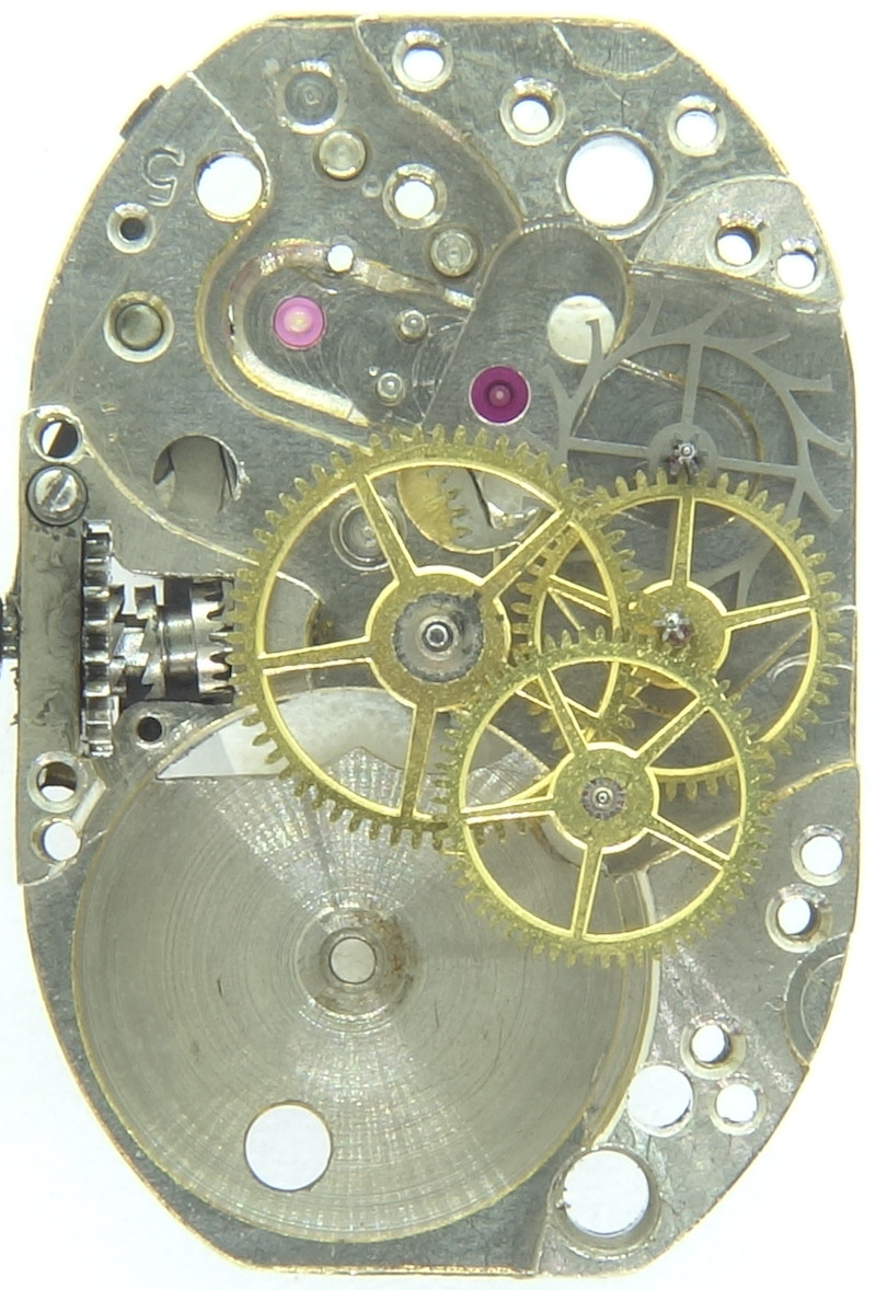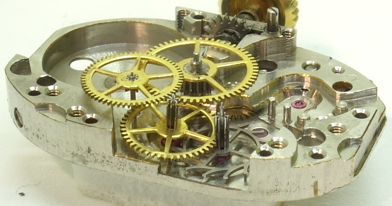 There’s a little oddity: The third wheel gear runs above the minute wheel.