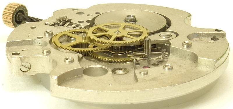 The pretty thin wheels, which partially have got only four legs, remind of those of quartz watches.