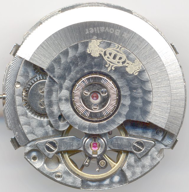 Unlike most other chinese movements, it is decorated at the visible parts, with a stripes decoration at the outer part of the gear bridges and with a perlage decoration on the remaining surfaces. The perlage decoration is only at the surface and far less deep, than on decorated swiss movements.