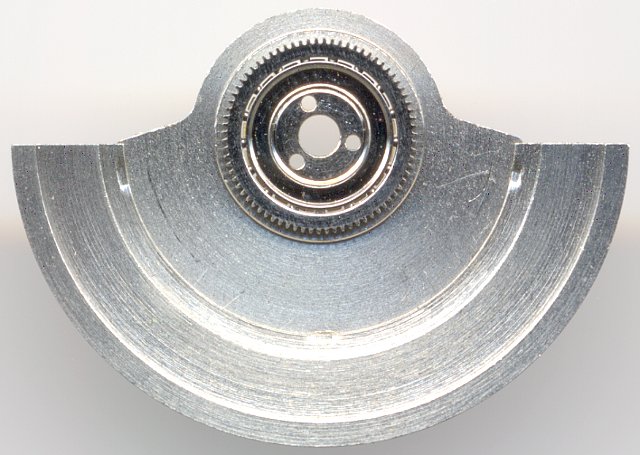 The oscillating weight is ball-beared on the inner side and has got a large bearing, which is pretty loud, but eliminates problems with bevelling due to worn-off or not accurately fitting bearings.