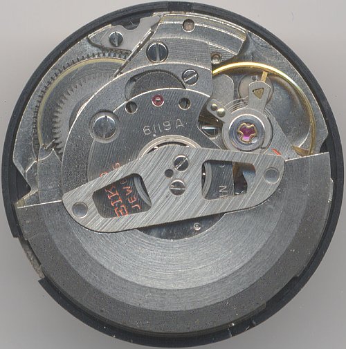 In the late 1960ies, one of the most successful Seiko movements was launched: Caliber 6119. Over the years, it evolved in three versions, with 6119A being the oldest. Caliber 6119A can easily be identified by the two screws, which hold the rotor. The later calibers 6119B and 6119C hold the rotor only with a thick center screw.