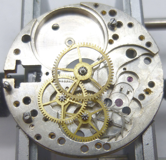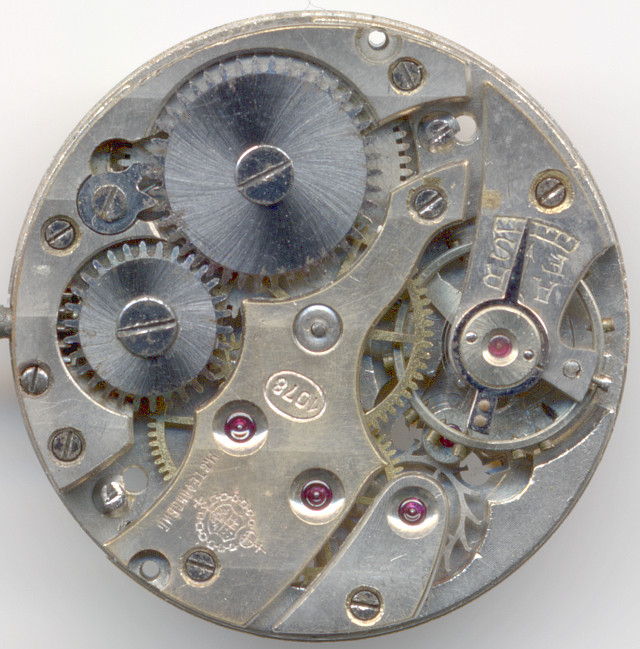 Such a movement from that era is the Silvana 1078, on which you can still see in some details the relationship to a pocket watch movement.