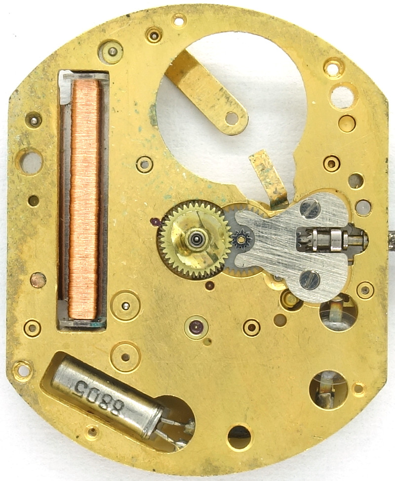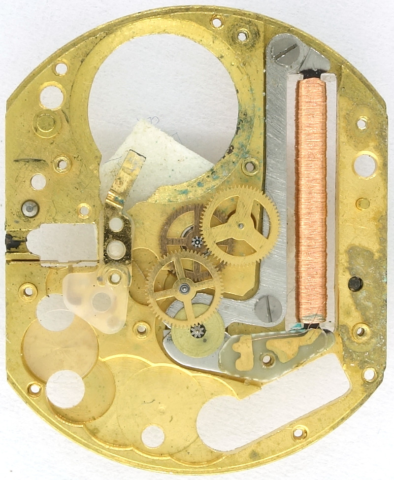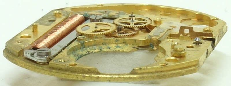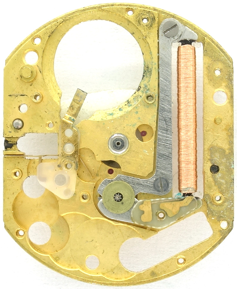 To save height, there are recesses on the motherboard for the battery, the coil of the Lavet stepper motor and the quartz.