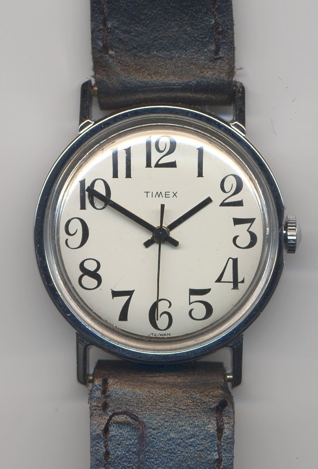 The caliber M104, based on the caliber M100 and enhanced by a center second, was also put into mens’ watches. It clearly shows its far-eastern origin.