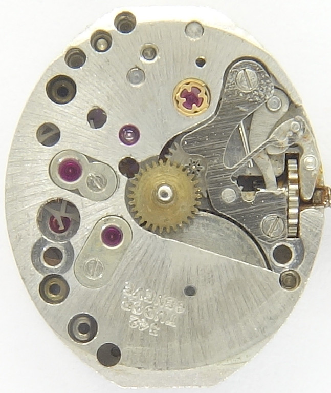 The Tudor 342 shown here, a form movement of 5 1/4 lignes for ladies’ watches, is an improved Peseux 342, on which especially the balance system, but also most bearings were put onto the highest possible level.