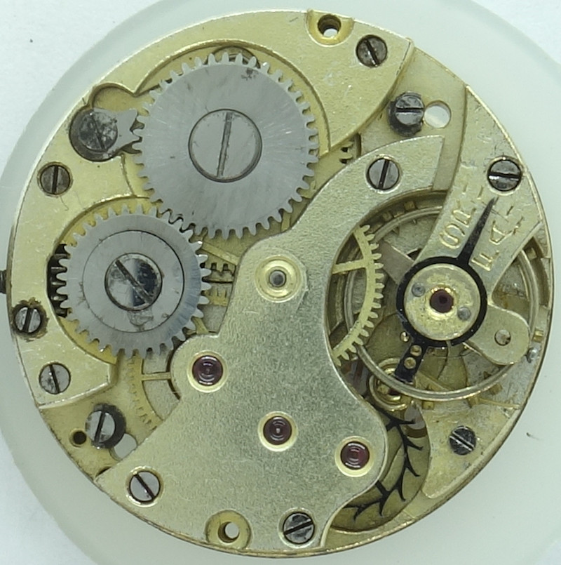 The Urofa 52 shown here is neither marked on the dial side nor on the movement side, but could be identified because of its distict shape of the setting lever spring.