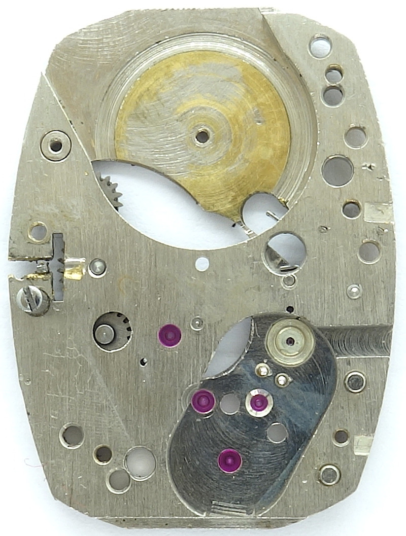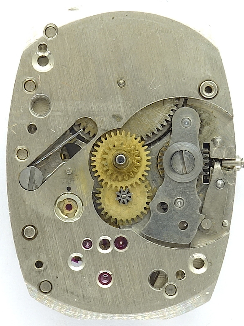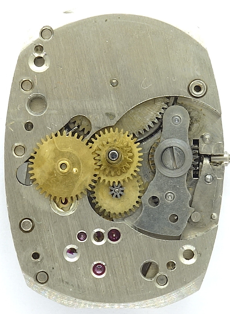 The Usersi 47/11, distictable by the straight edges on the short side, was a rather simple windup form movement with an analogie date indication, but at least with a pallet lever escapement.