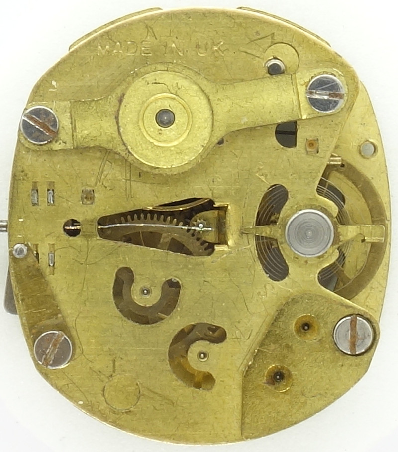 This ruby-free disposable movement, Westclox W4 was made in Scotland, probably in the 1950s. With its size of 10 1/2 x 9 1/4 lignes (23.5 x 21.0mm) it was pretty large and crude and completely lacks filigree and finishing.