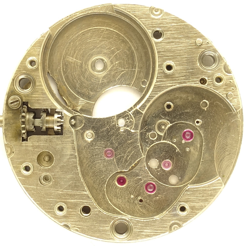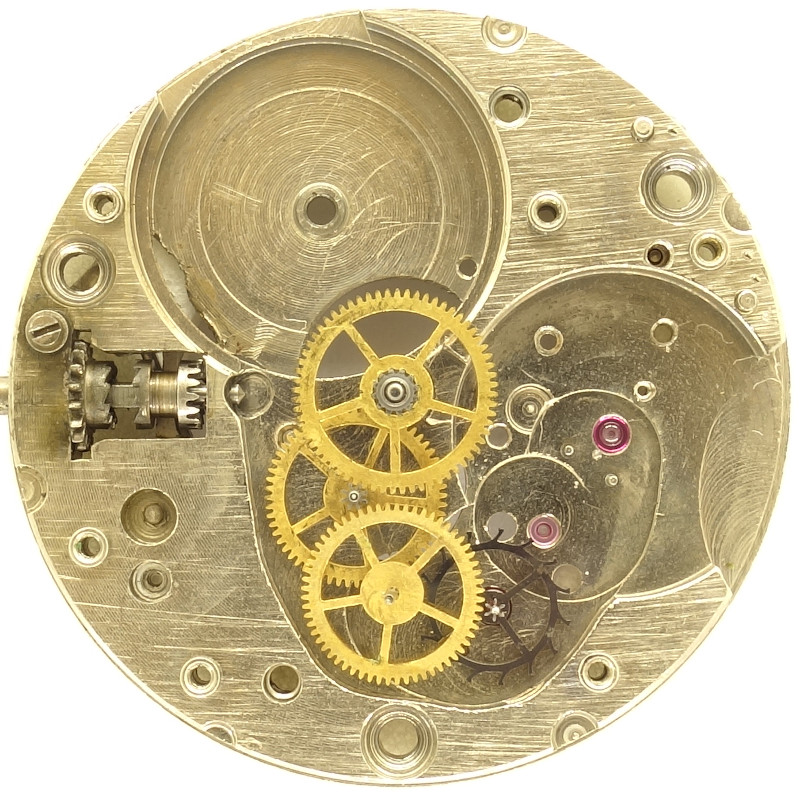 All important bearings of this movement contain rubies, the escape wheel even one cap jewel on each side, so that in total, 17 jewels were used.