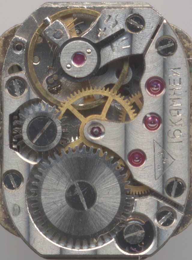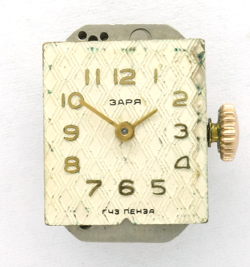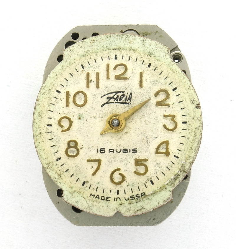 Probably from the 1950s is the small windup movement Zaria 1800 with its nominal size of 6 1/4 lignes (18.4 x 14.0mm).