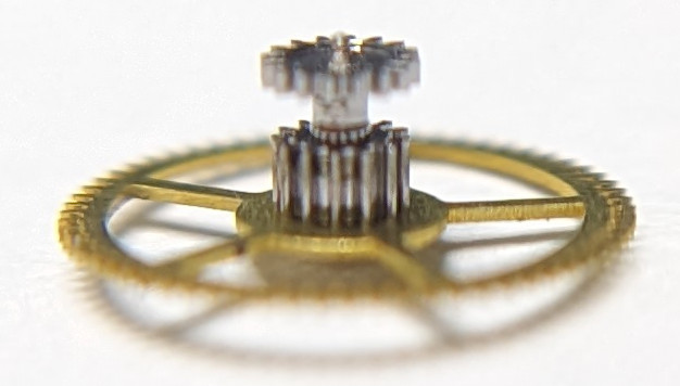 The hands setting wheel of the winding mechanism first engages with a reverser wheel, then onto the gear of the second wheel, and finally on the reverser and reduction wheel for the hands.