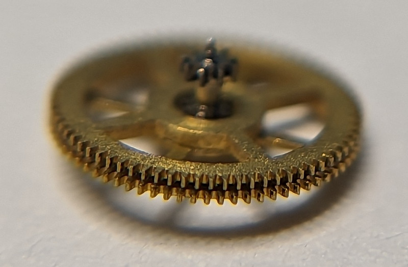 The remaining two gears of the gear train are beared under an own cock. They are the seconds wheel and the escape wheel.
