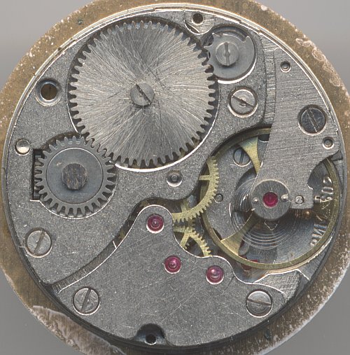 This movement seems to originate from the 1930ies. It does not use a shock protection, but has got a small decentral second hand, and the shapes of the plates remind of early times.