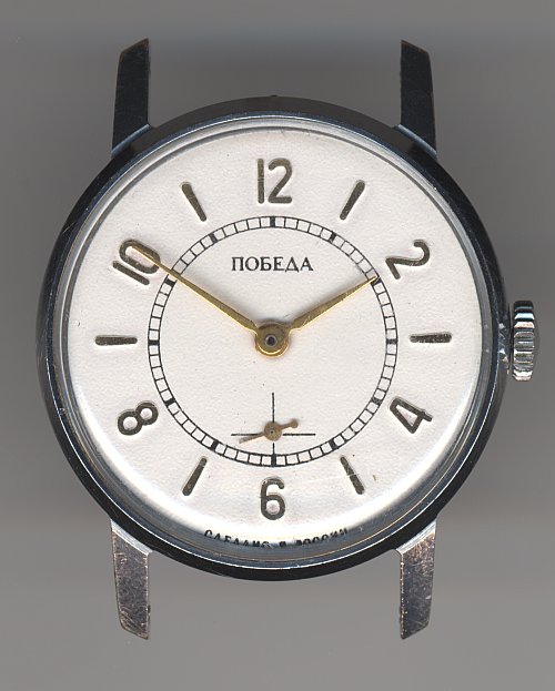 This movement, called “Pobjeda”, was produced by a number of russian watch factories, such as the second Moscow watch factory, which called it Slava 2602.