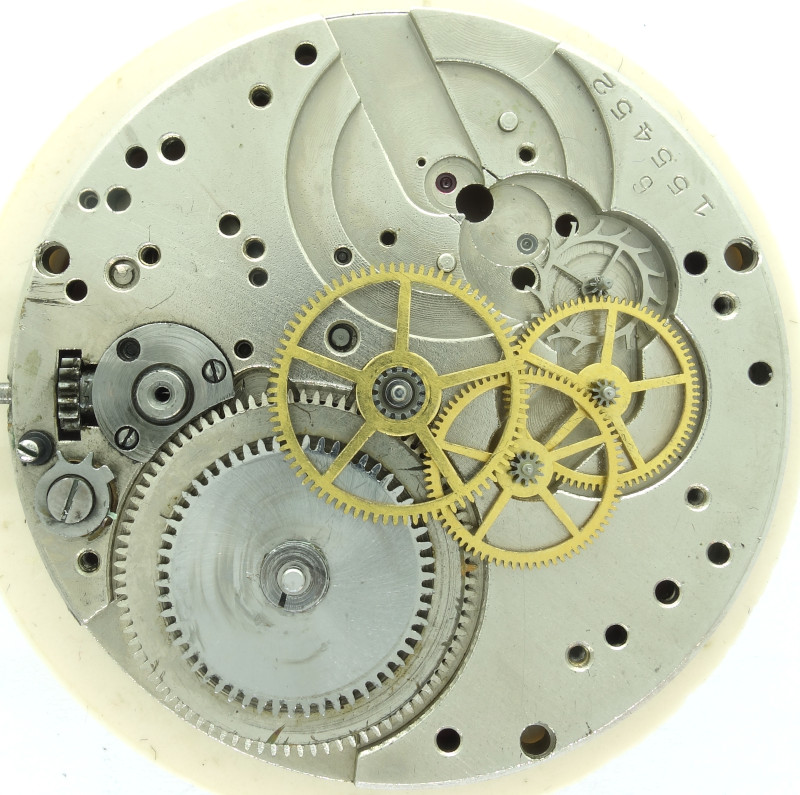The only speciality is the hidden winding system, which requires, that the minute wheel runs above the ratchet wheel.